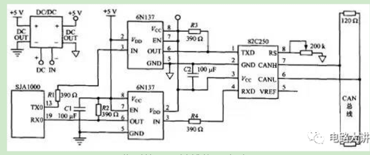 图1 典型的CAN总线接口电路原理图