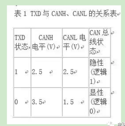 图1中的CAN收发器82C250的发送数据输入端TXD与光电耦合器6N137的输出端OUT相连,注意TXD必须同时接上拉电阻R3。一方面,R3保证6N137中的光敏三极管导通时输出低电平,截止时输出高电平;另一方面,这也是CAN 总线的要求。具体而言,82C250的TXD端的状态决定着高、低电平CAN 电压输入/输出端CANH、CANL的状态(见表1)。CAN总线规定,总线在空闲期间应呈隐性,即CAN 网络中节点的缺省状态是隐性,这要求82C25O的TXD端的缺省状态为逻辑1(高电平)。为此,必须通过R3确保在不发送数据或出现异常情况时,TXD端的状态为逻辑1(高电平)。