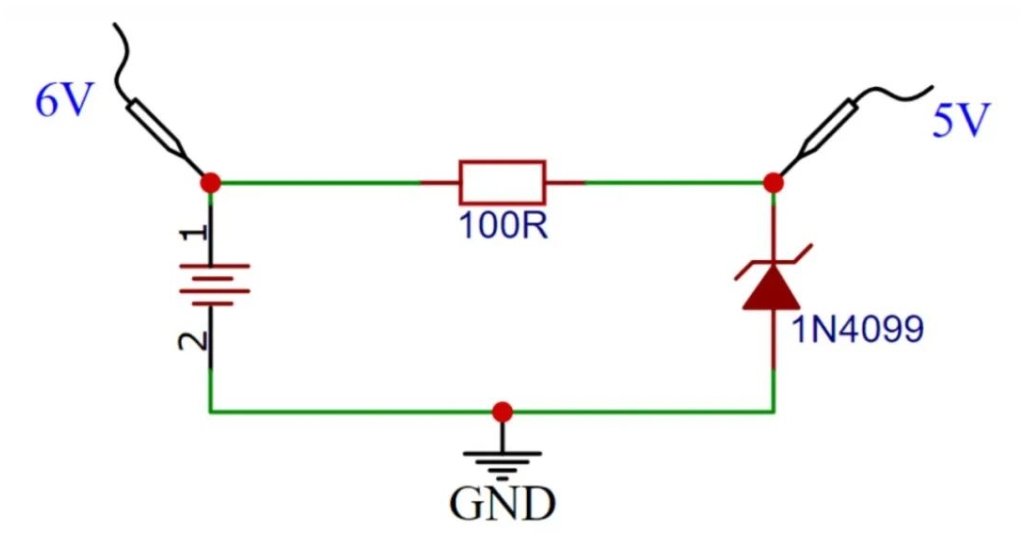 1N4099是一个6.8V的二极管,如果输入超过6.8V,输出将被钳位在6.8V左右。