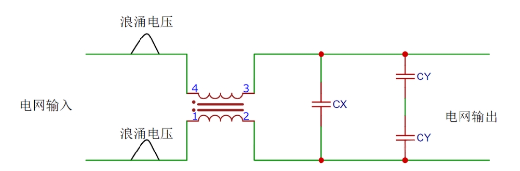 其中放电管、压敏电阻与TVS的防护原理是当电压超过一个阈值时,器件的电阻会迅速减小,我们将该器件并联在电路中,从而提供一个泄放通道到地。共模电感便是利用电感的特性,只允许两个同相相反振幅的电压通过,而浪涌一般是两个相同的信号,这样浪涌就会被抑制,通常共模电感用在放电管、压敏电阻等器件的后级。